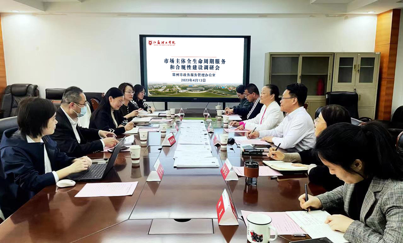 4月13日,常州市政务服务管理办公室党组成员、副主任杨华一行赴江苏理工学院资产经营集团公司就“市场主体全生命周期服务和合规性建设”召开专题调研会。校党委常委、副校长蒋心亚、集团公司总经理朱军、副总经理房子磊等热情接待来访一行。